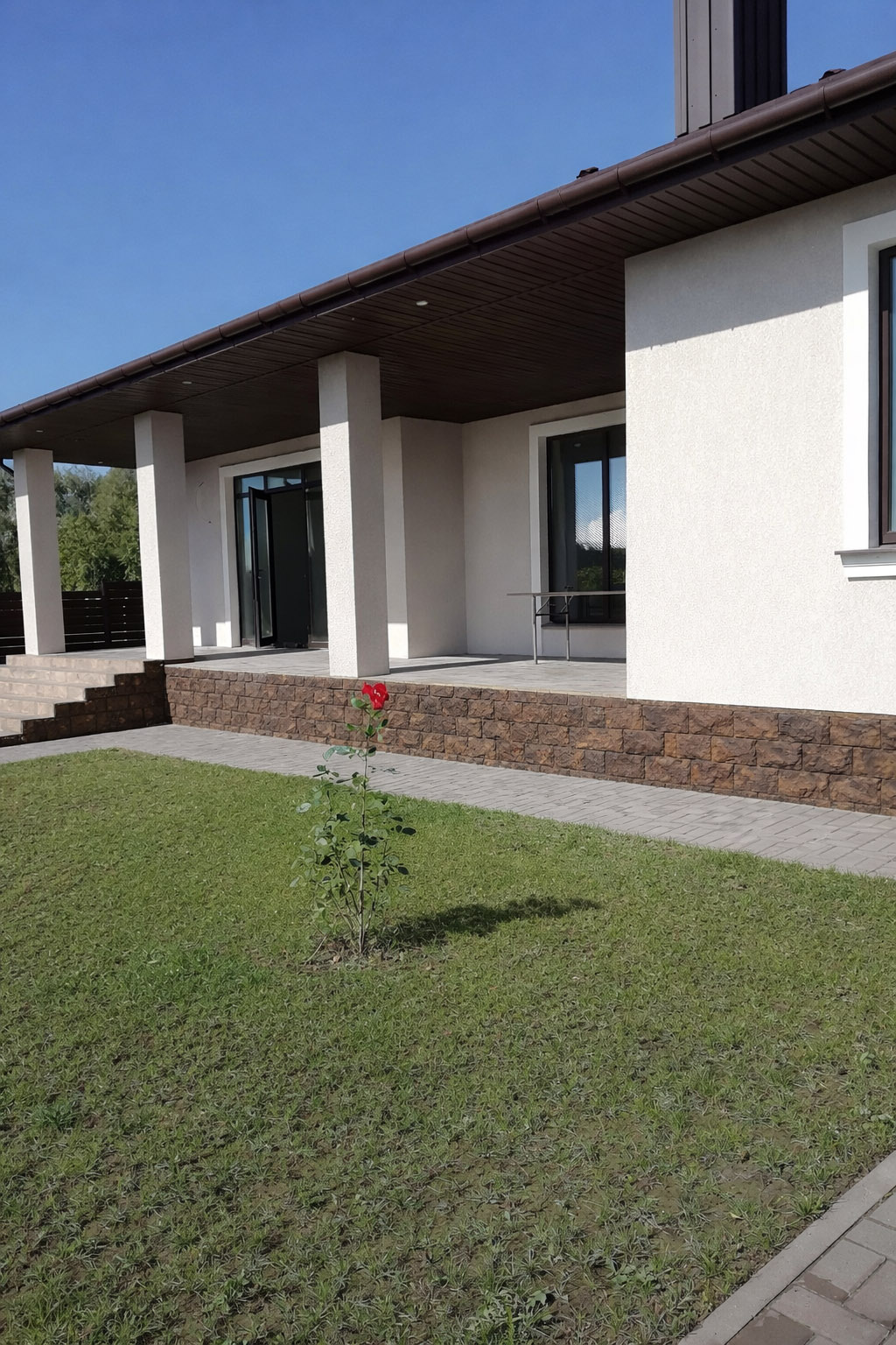 Декоративный бетонный камень Дербентский, цвет темно-коричневый — надежный облицовочный материал из бетона с технологичными добавками для фасадов. Полная имитация фактуры натурального камня без характерных для него недостатков. Технические характеристики: морозостойкость от F150, водопоглощение не более 8%. Предназначен для облицовки цоколя и является надежной защитой нижней части фасада от влаги, перепадов температур и механических повреждений. Помимо барьерных функций, покрытие придает дому завершенный внешний вид, подчеркивая архитектуру строения.